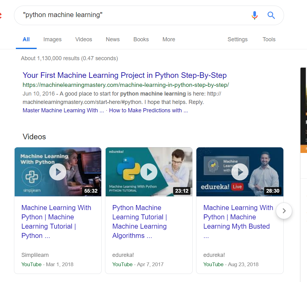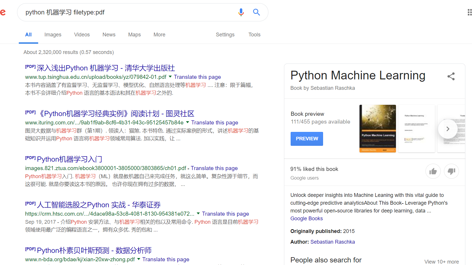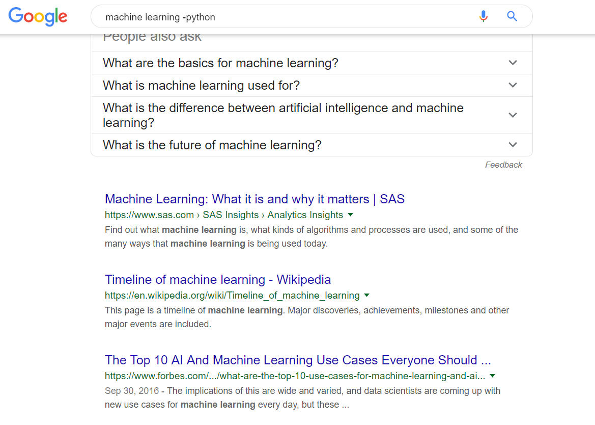 减号通常用来排除某一搜索内容,图示即为 不含 python 的 machine learning 搜索结果。